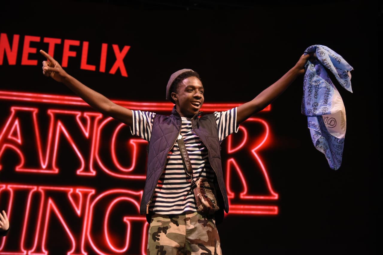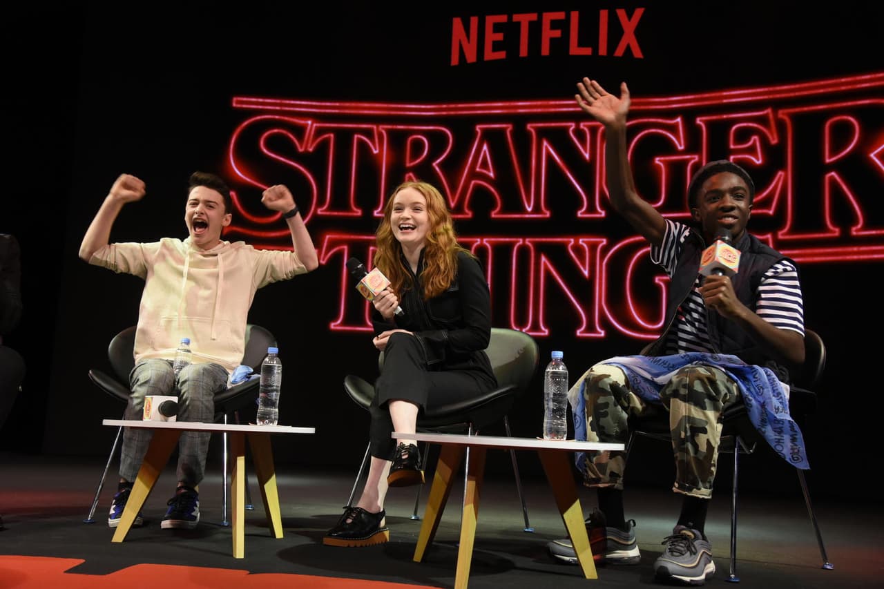 Puede que los actores sean adolescentes, pero parte de la confección de sus personajes implicó comprender la década del 80 como si la hubieran vivido: «Me gustan todos los que aparecen en Stranger Things: los Goonies, Volver a Futuro, Stand by me...o, incluso, Cazafantamas», dijo Caleb. Y ahí rápido, los tres jóvenes entonaron la clásica canción de la película y los gritos retornaron.