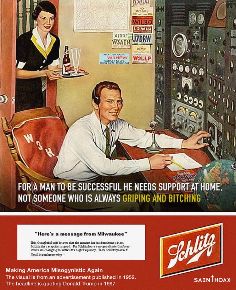 Artista coloca frases de Trump en anuncios sexistas de los años 50 y el resultado es impactante