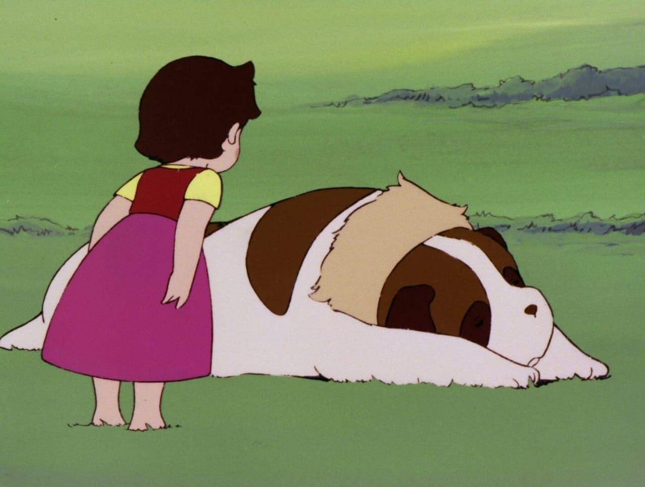 Este can corresponde a la raza san bernardo, que es originario de los Alpes Suizos (donde se desarrolla la caricatura). Aunque tienen un gran tamaño, los san bernardo son muy tranquilos y amigables.