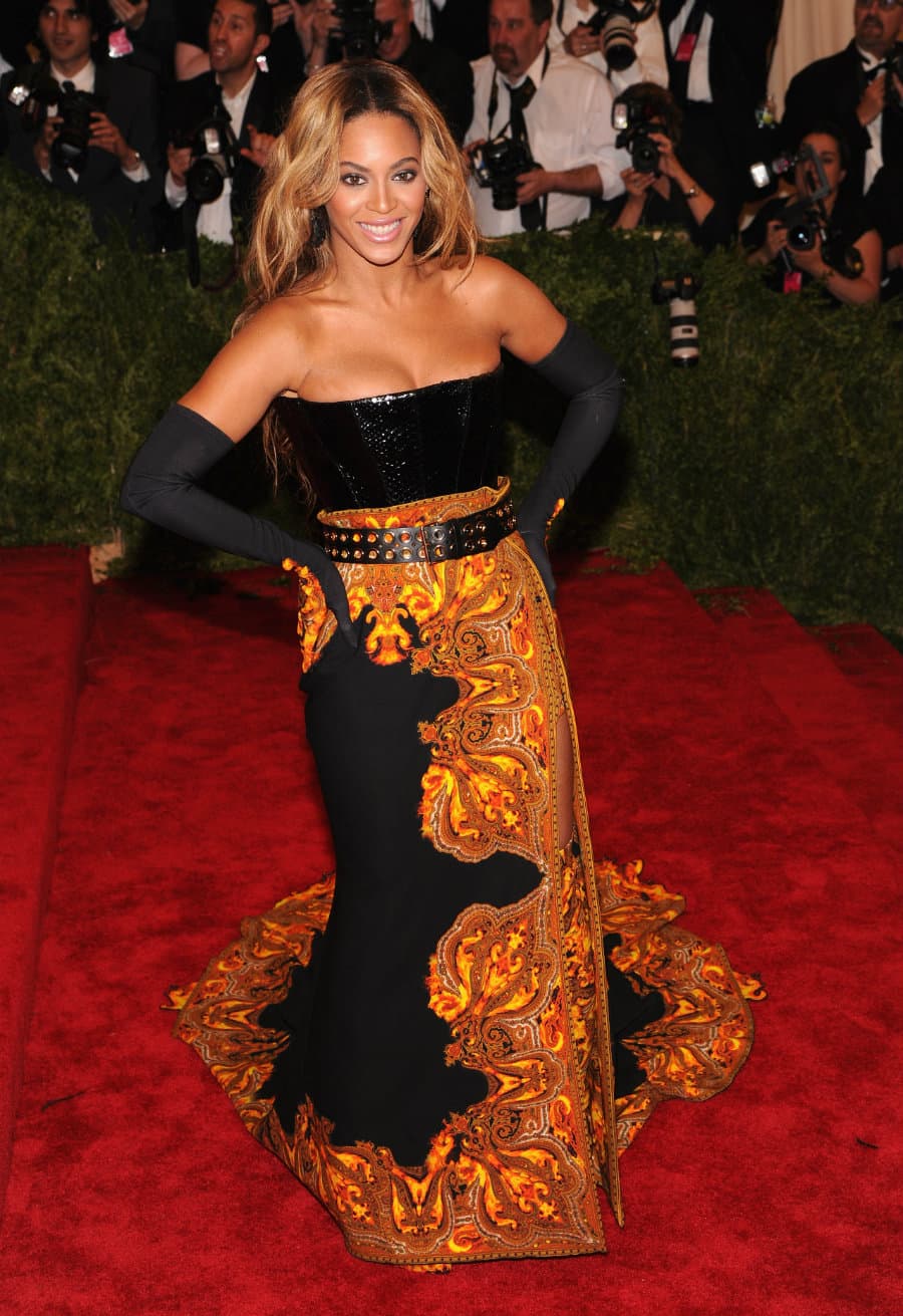 A pesar de su gira y su vida familiar, Beyoncé no deja los eventos importantes de lado y fue vista en la gala del MET en Nueva York en donde honró la temática del punk con un vestido negro y dorado de Givenchy.