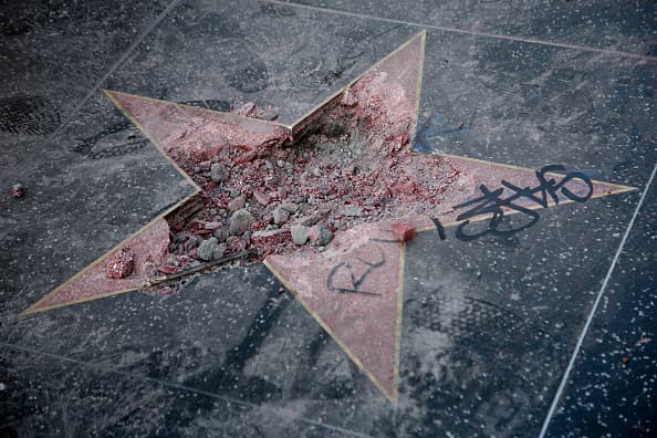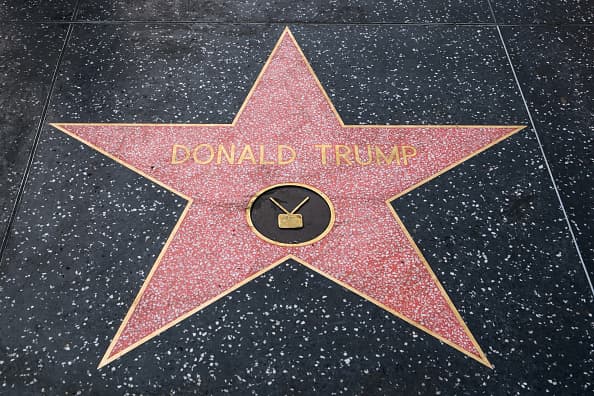 Trump recibió su estrella en 2007 debido a su trayectoria como productor en certámenes de belleza (de los que era dueño). En los último años, su placa se ha convertido en un campo de batalla para el debate político de Los Ángeles y a menudo es posible observar que esta es vandalizada con martillos y herramientas más pesadas.