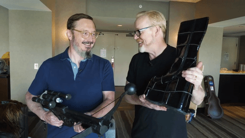 Adam Savage quizás se popularizó por Mythbusters, pero desde hace algún tiempo sigue creando objetos para Tested.com. Es toda una celebridad en lo que se refiere a trajes, tecnología y creatividad. En esta ocasión decidió llevar como compañero al comediante John Hodgman, quien usó un cosplay por primera vez en su vida.