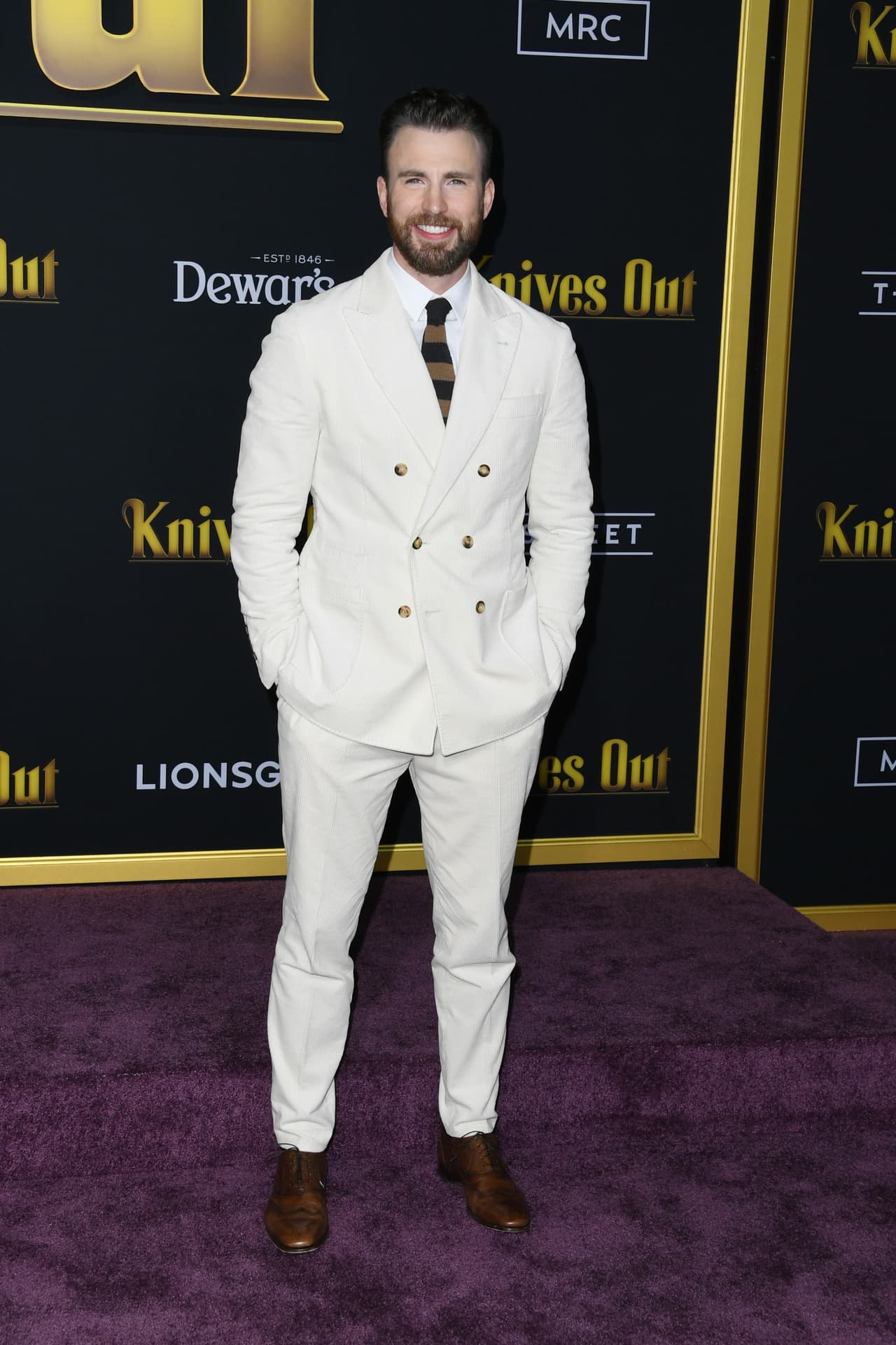 Chris Evans comparte la titularidad junto con todo el elenco, que no dudó en lucir sus mejores atuendos para la ocasión.