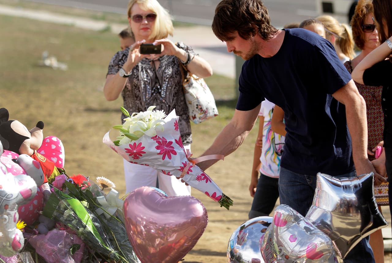 Bale fue acompañado a Denver, Colorado, por su esposa Sibi Blazic, y habló con el gobernador del estado, John Hickenlooper, y luego, con siete de las víctimas asistidas en el hospital. Además, dejó un ramo de rosas blancas en lugar donde ocurrió el hecho, que se ha convertido en una especie de lugar público donde los familiares de las víctimas han dejado flores, imágenes religiosas, cruces y fotos de los fallecidos.