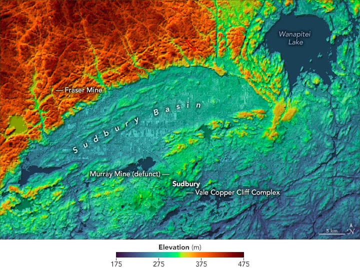 La cuenca de Sudbury, ubicada en Canadá, resulta ser uno de los cráteres más impactantes al medir casi 60 kilómetros y aunque por años se creyó que había sido creado a causa de un asteroide, una investigación realizada por el experto Joe Petrus en 2014 remarca que esto pudo crearse hace mil 800 millones de años por un cometa.