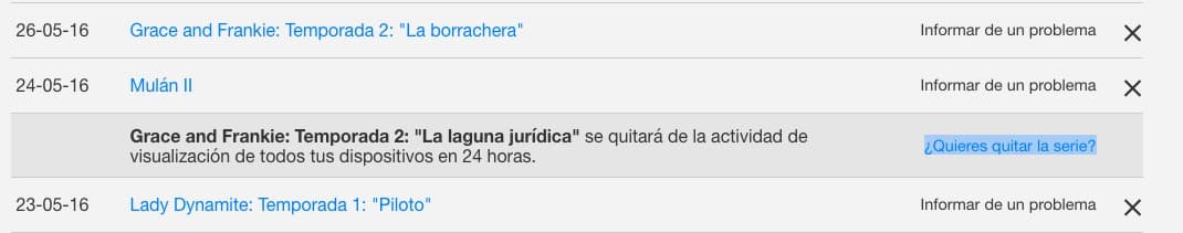 Netflix te preguntará si deseas que ese vídeo se quite de tu actividad de visualización, para confirmar cliqueas en ¿Quieres quitar la serie?