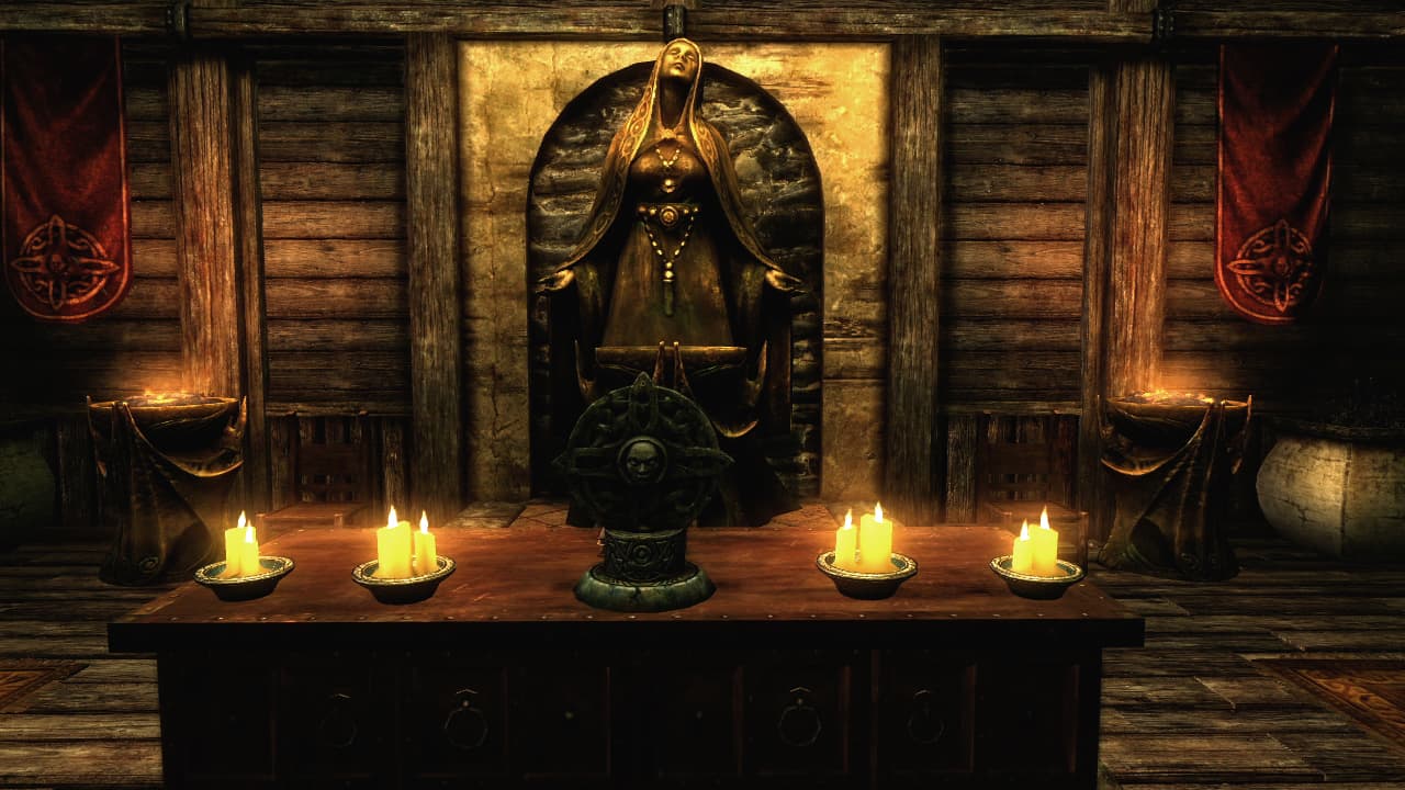 Para poder casarse en Skyrim existe un único requisito y se trata de contar con un amuleto llamado Amulet of Mara. Este amuleto lo puedes encontrar como premio en cualquier parte del vasto mundo de Skyrim o puedes ir a comprarlo directamente por 200 de Oro con Maramal. Este personaje es un sacerdote que encontraremos en el Templo de Mara en Riften.