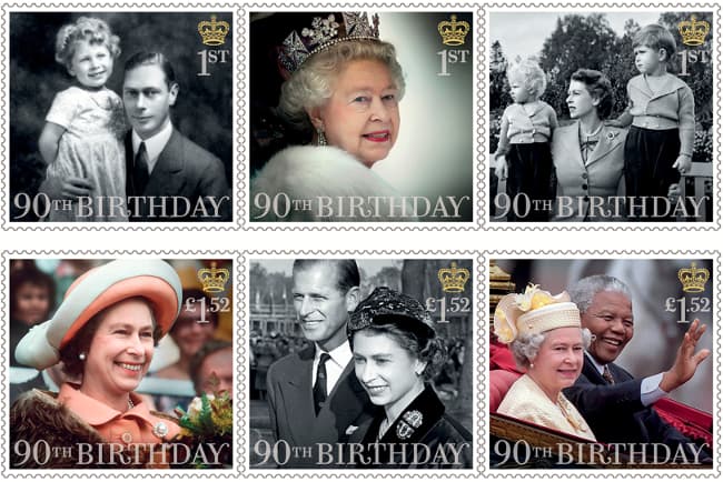 Estampas de correo en honor al 90no cumpleaños de Elizabeth II