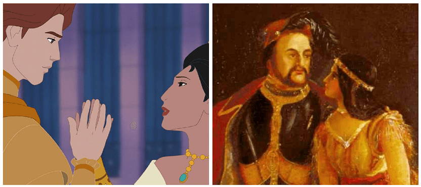 La historia de amor entre Jhon Smith y Pocahontas sólo existió gracias a Disney. Lo que sí fue real, fue la relación entre ella y el guerrero de su tribu, Kocoum, mucho antes de conocer a Jhon Rolfe, cuando ella tenía 16 años.