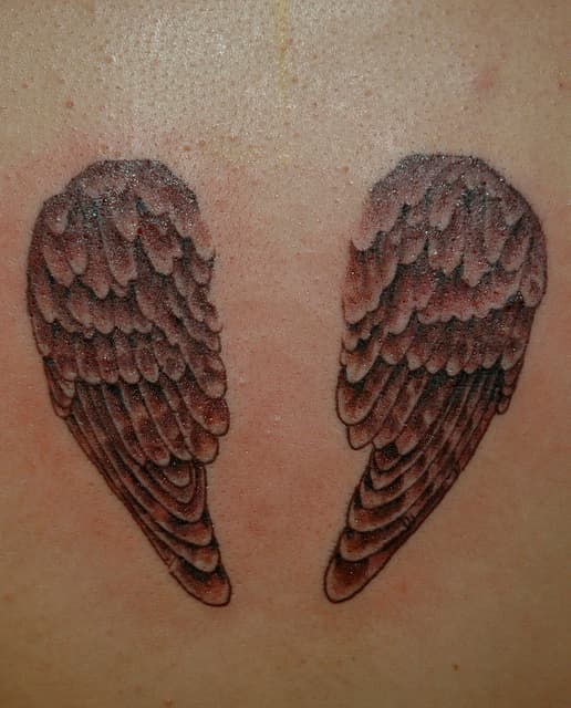 Pero si no te arriesgas a hacerte un tatuaje tan grande, puedes optar por alas más pequeñas, pero deberán ir juntas para que no queden mal. La ubicación tendría que ser cerca de los hombros y quedan muy bien.