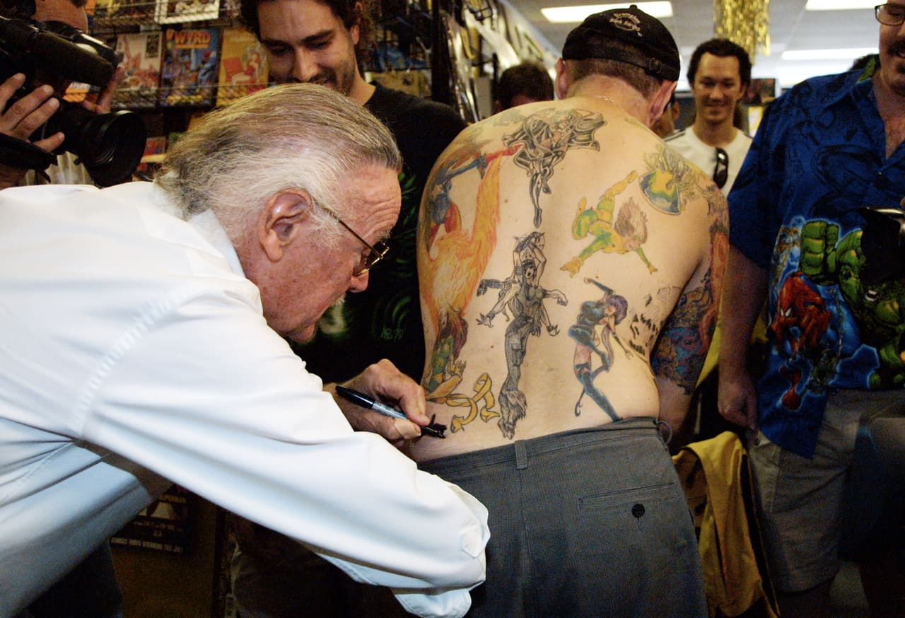 Stan Lee siempre fue amable y muy versátil con sus fans. En el marco de la presentación del cómic Just Imagine en 2001, firmó el trasero del fan Rob Lambert sin reparos (total, le serviría de complemento para sus tatuajes).