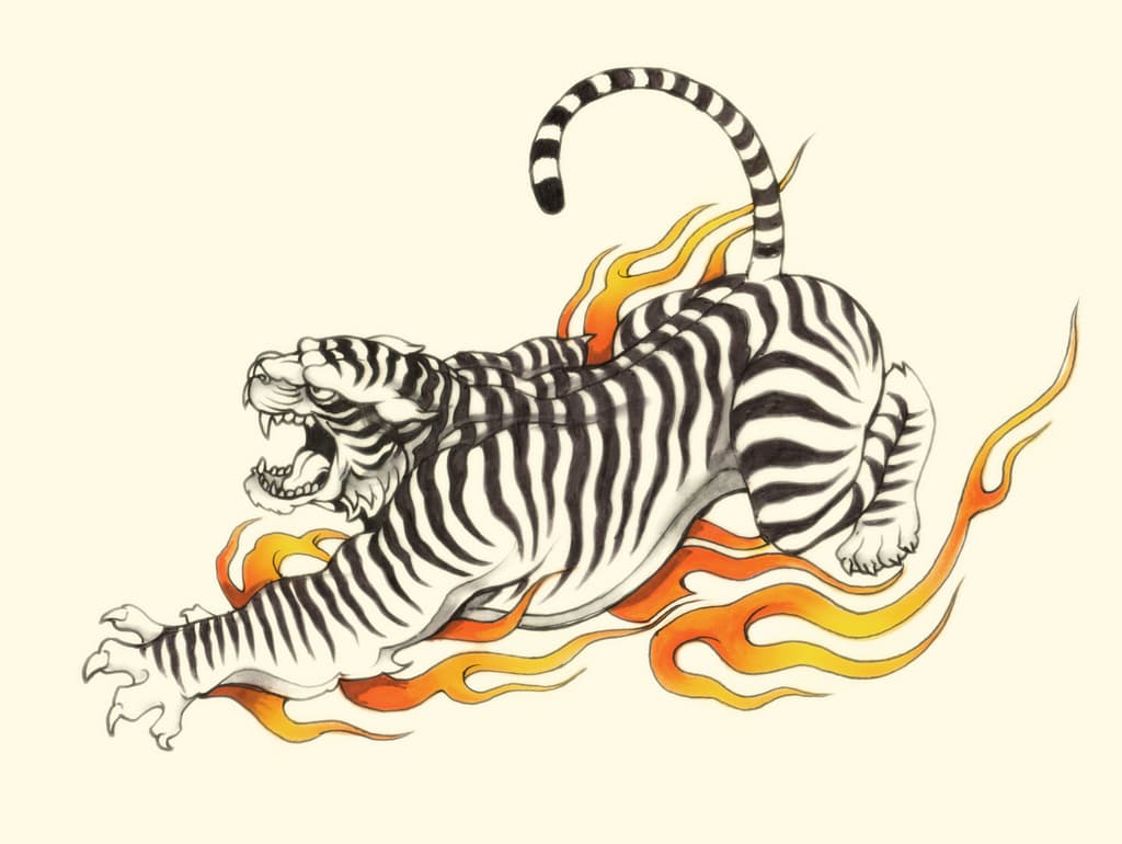 Si bien ahora el uso del color en los tatuajes es muy amplio, tradicionalmente el tigre era a una única tinta negra, y hoy en día sigue siendo el elegido.