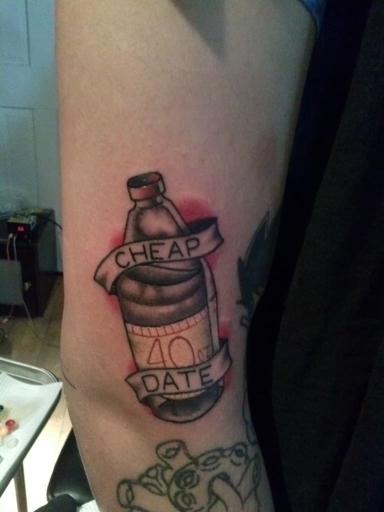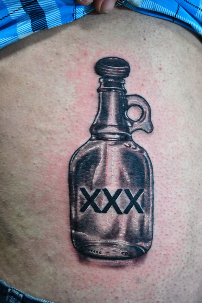 No sé con exactitud cuál puede ser el significado del tattoo de una botella de cerveza, por ejemplo, pero algunas personas parecen tenerlo muy claro. Por ejemplo, el caso del tatuaje de botella de la siguiente fotografía, que está acompañado por la frase " Man's ruin" (la ruina del hombre).