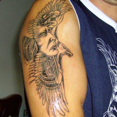 El diseño fue hecho en un estudio de Salamanca, España, llamado Moo Tattoo y tuvo un costo de 110 euros. En él se puede apreciar el águila desplegando sus alas y un rostro humano que se entramezcla y lo acompaña.