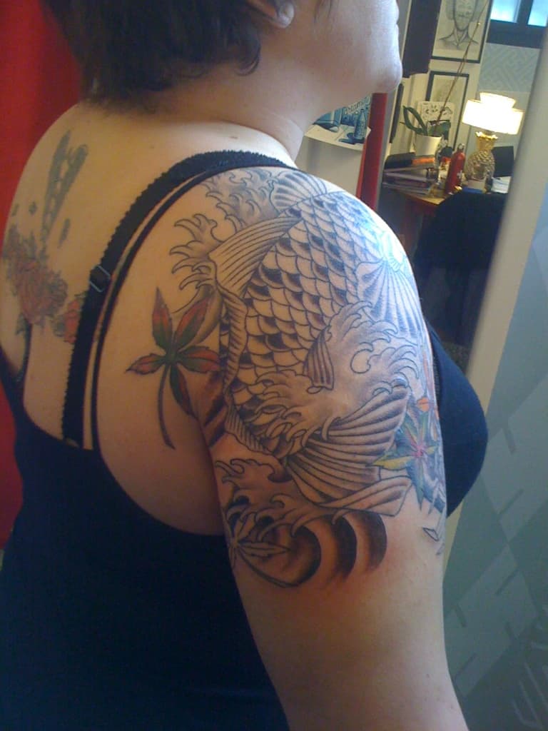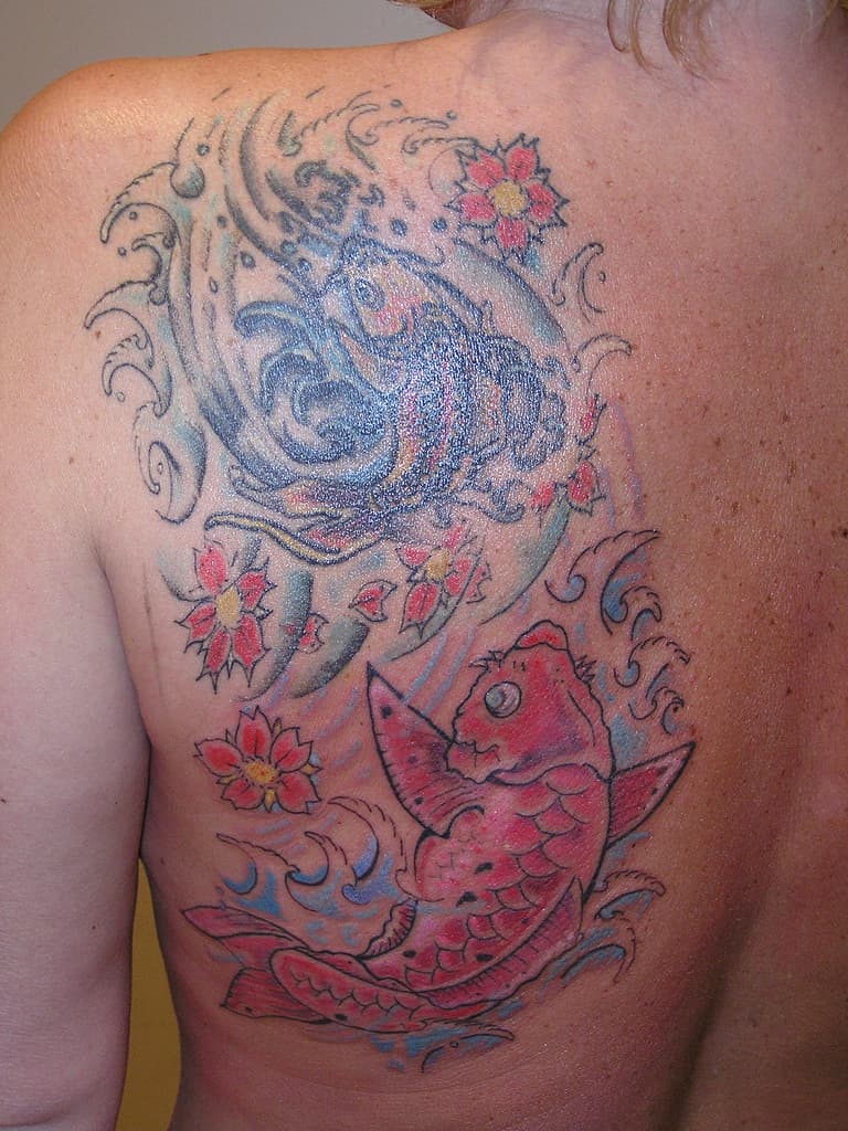 Por otra parte, hay diseños más versátiles en cuanto al tamaño: la flor del cerezo, que es símbolo de belleza femenina y sexualidad; símbolos populares, como letras japonesas, tortugas, kimonos, geishas y, mi favorito: el pez Koi. Con este último sucede lo mismo que con los dragones: hay muchos diseños disponibles, entre los cuales de seguro está el indicado para ti.