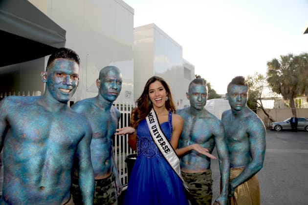 La Miss Universo 2015 de 22 años hizo su debut como reina universal durante el show latino. Como parte de su intervención la barranquillera tuvo palabras de apoyo para las chicas y les dijo que la diversión y la autenticidad.