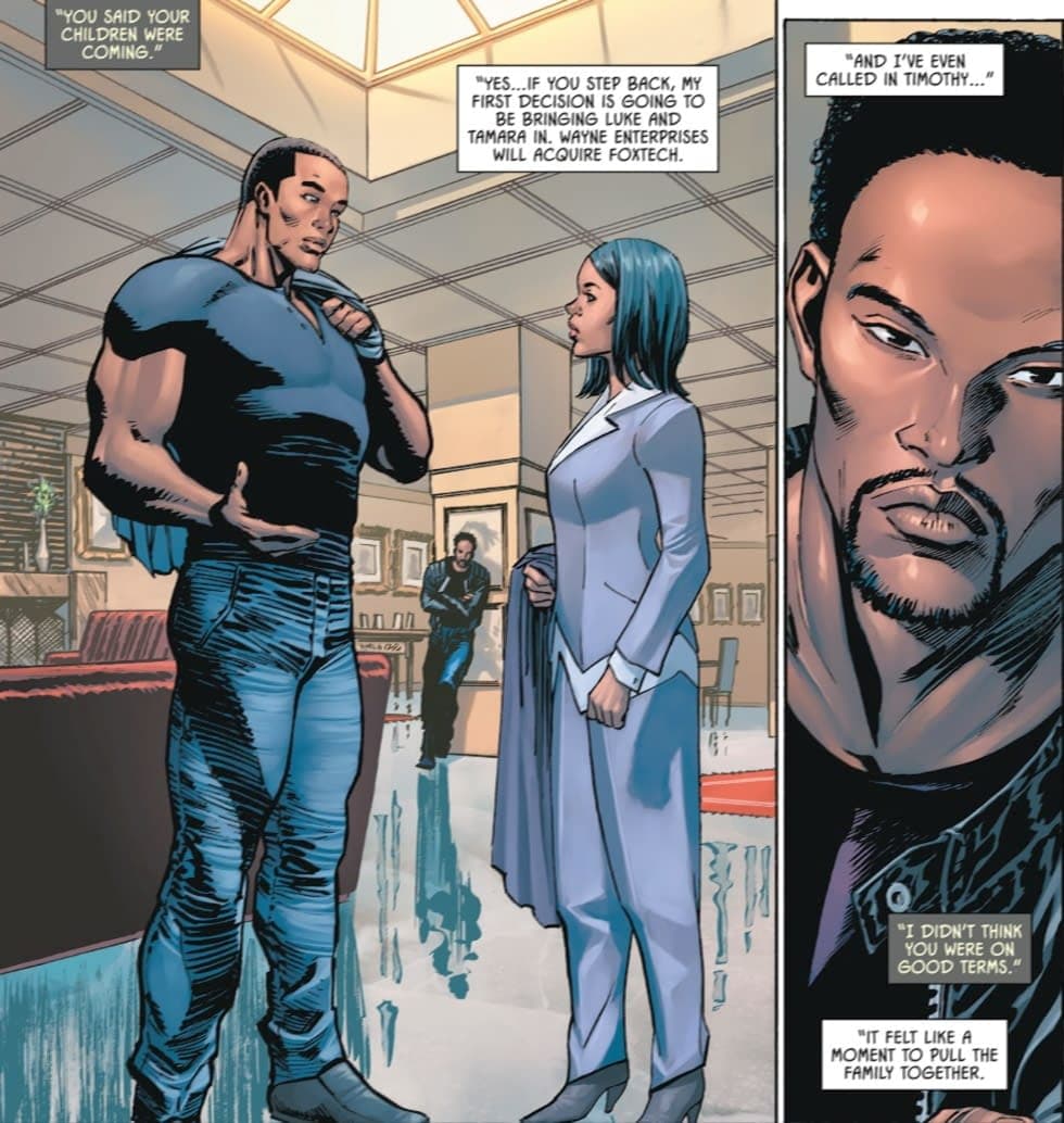 Ahora, en un comunicado de prensa que promociona el próximo Future State: The Next Batman, se anunció que Tim Fox (hijo del asistente de confianza de Batman y "gurú" de la tecnología, Lucius Fox) se convertirá en el Caballero de la Noche del futuro.