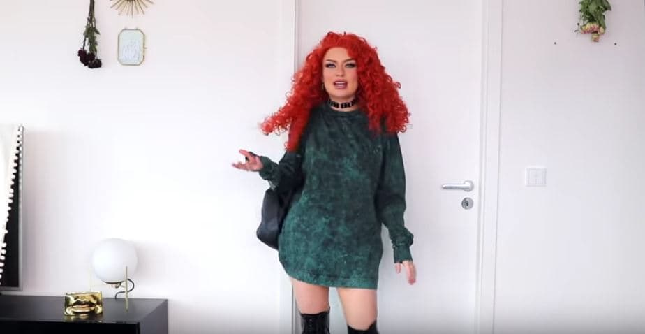 Lo logró con apenas un suéter más grande de su talla, un choker, botas de plataforma y una mochila. Por supuesto, también ayudó mucho el hecho de que tenía una peluca de rizos pelirrojos a la mano.