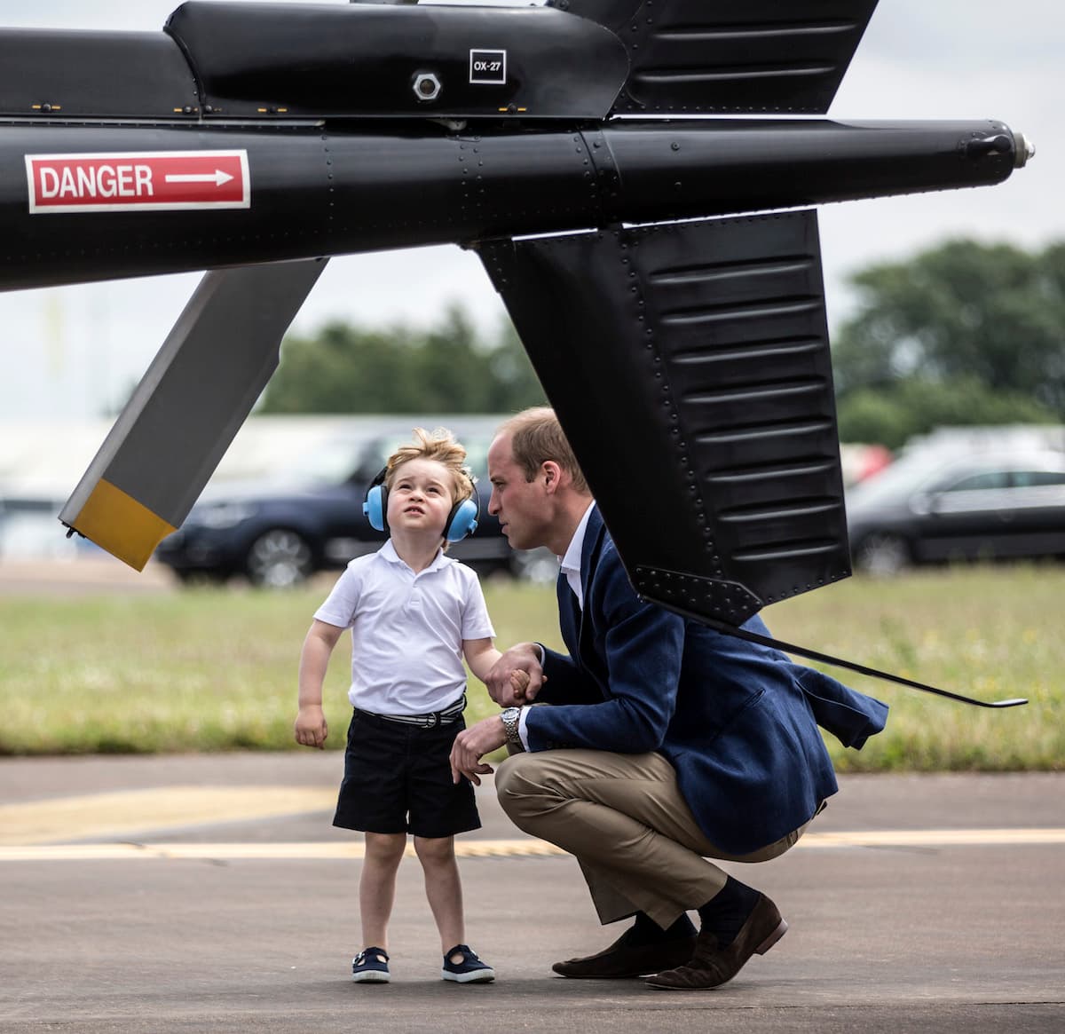 El príncipe William le muestra un helicóptero similar al que él voló durante su entrenamiento militar