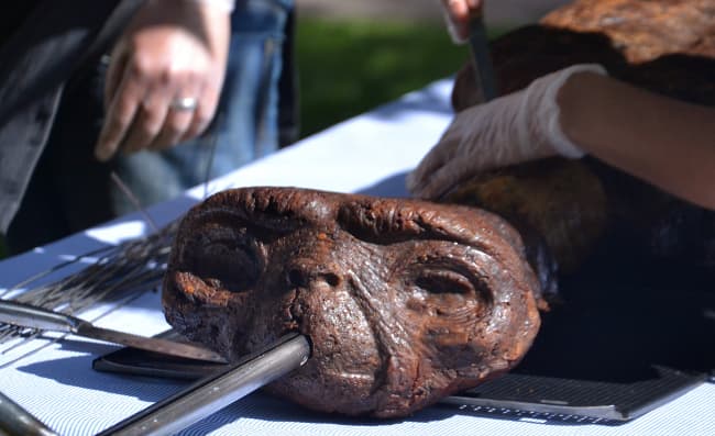 "Comerse una réplica tamaño real hecha de gluten, juntos, asada en un palo, es una reflexión acerca de lo que significa comer". Estamos traduciendo de AlienBBQ.org. Sí, ellos se encargan de COMERSE A E.T.