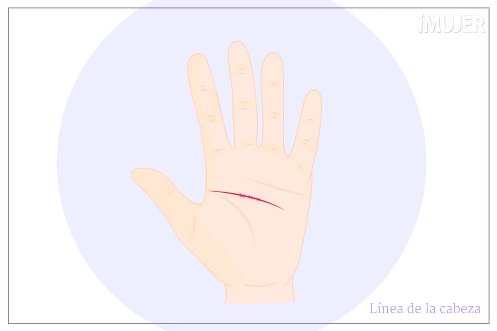 La línea de la cabeza, que te enseñaré a leer a continuación, indica la estabilidad emocional, las perspectivas románticas, la depresión y la salud cardíaca.