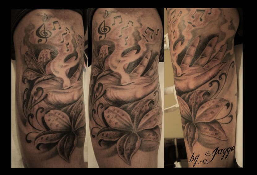 Jaggo es el único tatuador de su tienda y eso hace que tenga que estar familiarizado con todos los estilos de tattoo. A pesar de esto, sus predilectos son los realistas en escala de grises como los que se pueden ver a continuación.