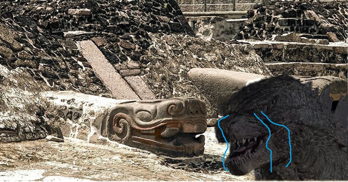 La intención de Godzilla será visitar a su amigo de la infancia, Quetzalcoatl, la serpiente emplumada.