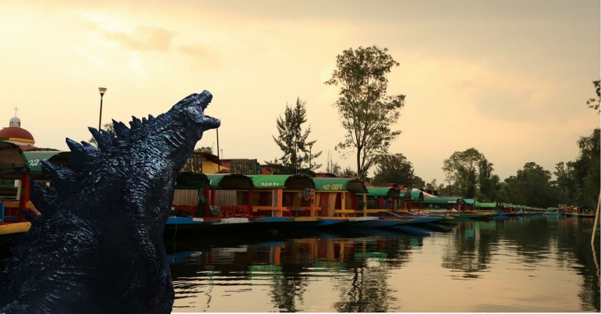 Sus amigos mariachis le explicarán que el canal de Xochimilco es el mejor lugar para que un kaiju como él obtenga poder, ya que sus aguas verdes son más que radiactivas.