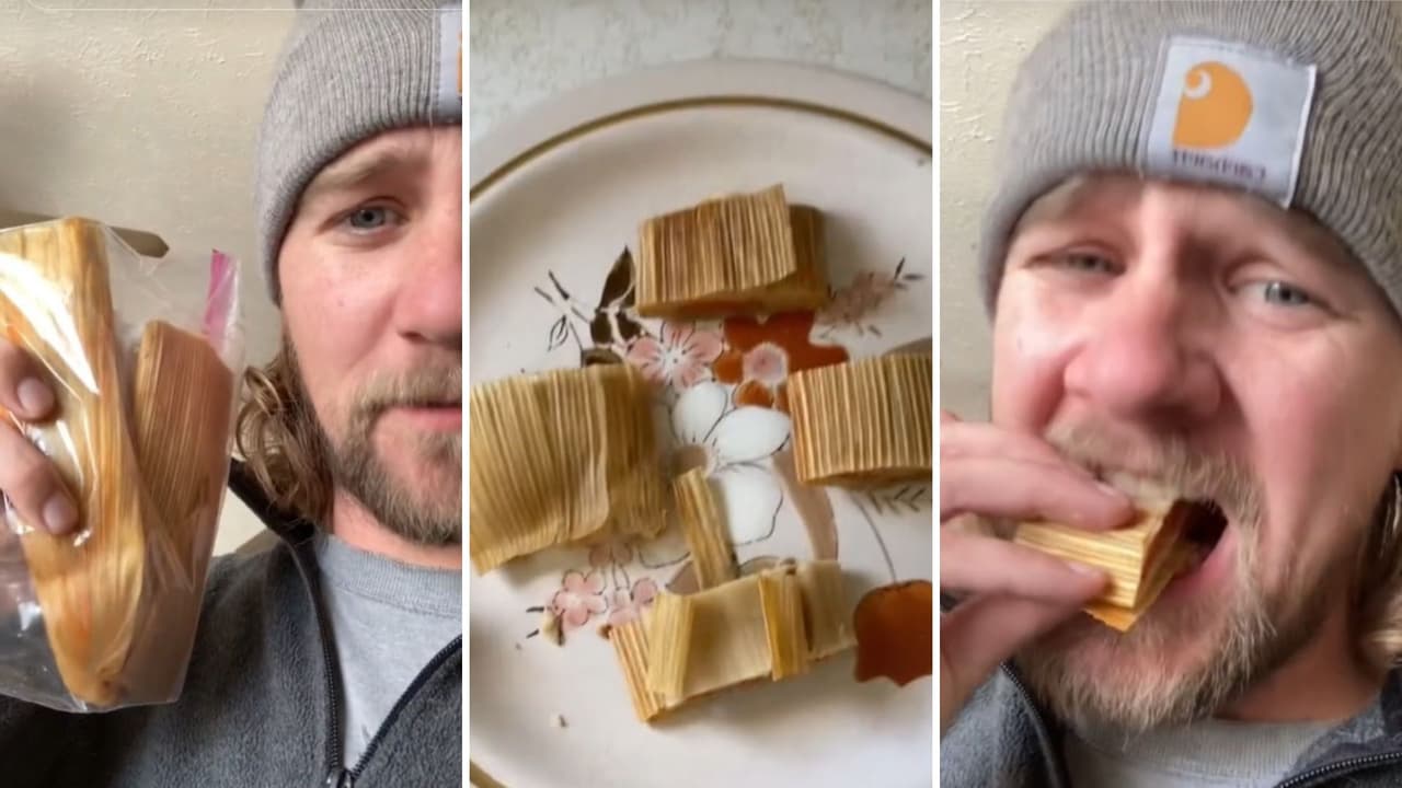 Estadounidense causa controversia al comer tamales de manera incorrecta