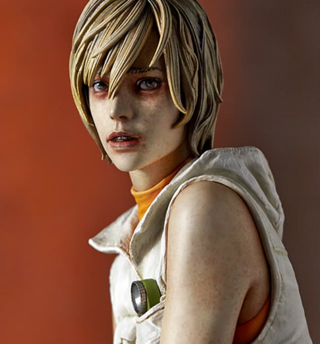 Agrega a la colección la primera protagonista femenina de la saga. Heather está muerta de miedo y se ve en la expresión de su rostro. No se limitaron en los detalles, pues desde su ropa y cabello hasta sus pecas en cara y cuerpo y sus ojos (los cuales se pintaron de forma individual y luego se pegaron a la cara) son pintados manualmente por artistas profesionales. Trae los siguientes accesorios: pistola, barra de acero y sable de luz (el cual se desbloquea en el videojuego). Una figura preciosa para todo coleccionista y fan de Silent Hill 3. Tiene un precio de $138 dólares.