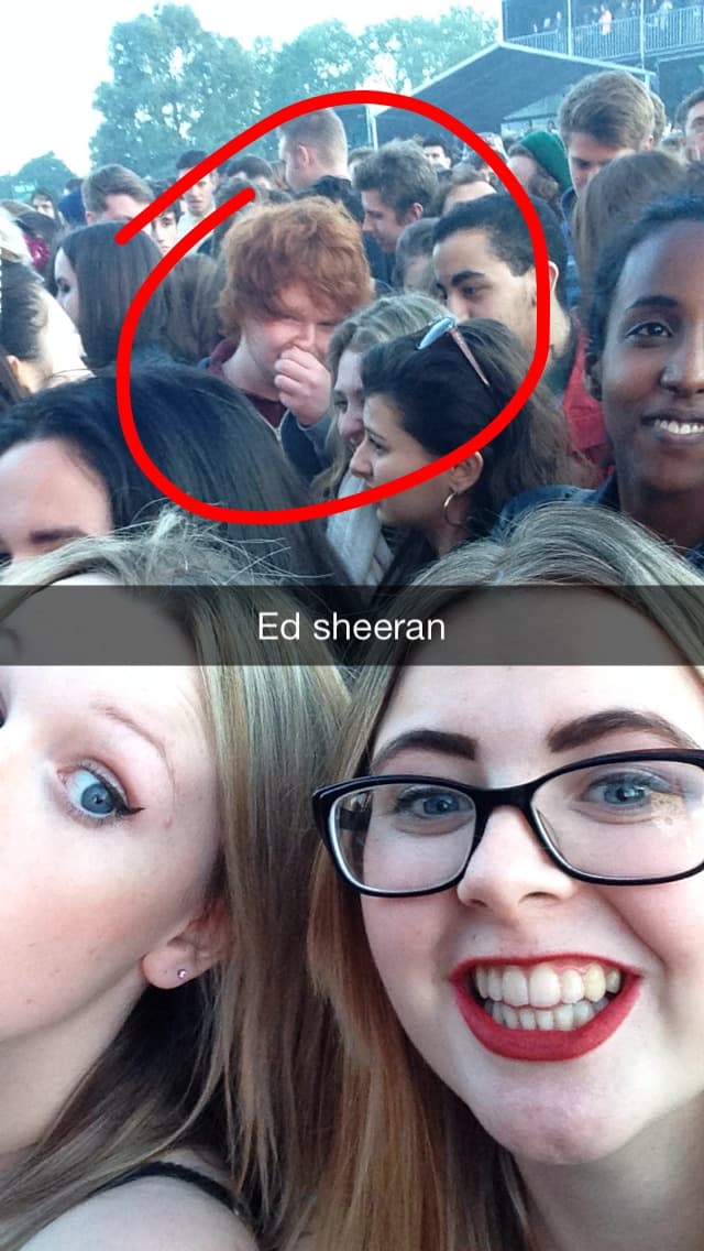 Ir a un concierto y encontrarte entre el público a Ed Sheeran es digno de una fotografía en Snapchat, eso seguro.