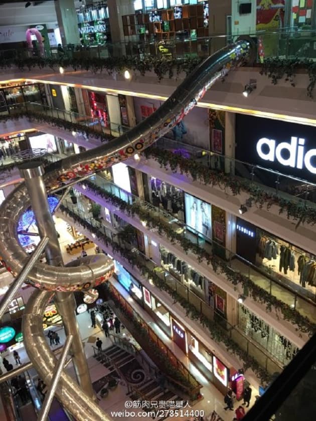Este centro comercial en Shangai tiene un tobogán para bajar sus 5 pisos y no sabemos si es genial o la muerte