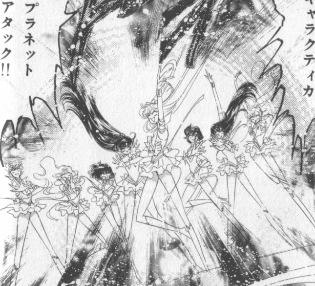 Dentro de la batalla final Sailor Galaxia no muestra ni una pizca de piedad y además de lanzar brutales ataques decide darle a Sailor Moon donde más le duele: vuelve a todas sus amigas en su contra ¡y al propio Tuxedo Mask!