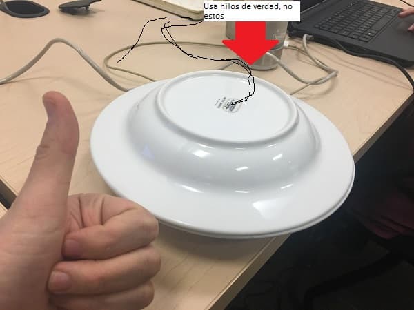 Compra dos platos en tu mercado o supermercado de preferencia y pégalos con Kola Loka. Ponle un hilo de acero reforzado en uno de los lados. Recuerda que son necesarios para darle efecto de platillo volador.