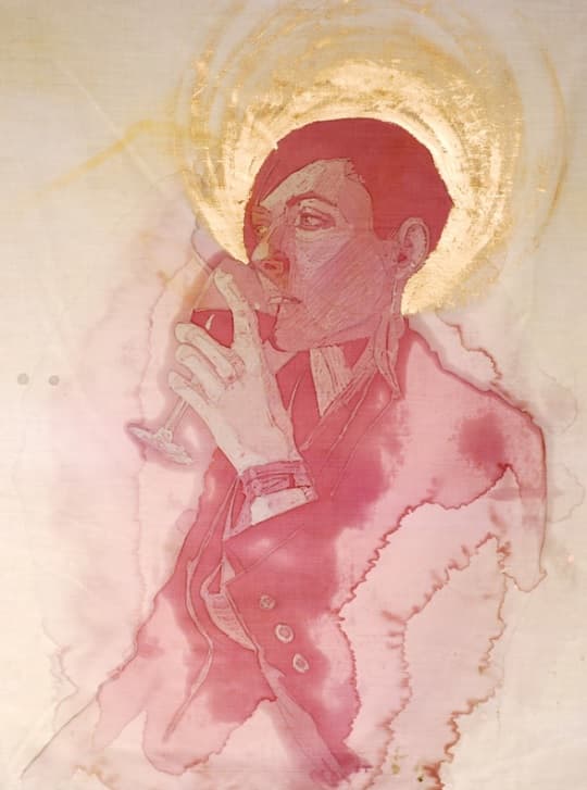 Artista, diseñadora y performer, Amelia Fais Harnas vio en una copa de vino mucho más que una promesa de relajación y disfrute. Ella vio arte y así lo demuestran sus espectaculares retratos, coloreados con la espirituosa bebida y algunos toques de otros materiales. Su sitio web nos revela varias series, entre ellas Drunk politics, The dinner party, Kindling y otras. Fais Harnas suele explicar qué tipo de vino se utilizó en la creación de cada serie y por qué. Además emplea otros materiales como polvo de bronce y acrílico.