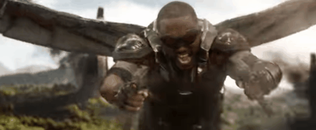 O cuando Falcon ataca desde el cielo a los monstruos de la Black Order.
