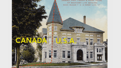 Ah, es una prueba de ingenio. La solución: encuentra la casa (un centro cultural, en este caso) que se encuentra JUSTO en al frontera. Este video es más para fomentar la amistad entre canadienses y estadounidenses, simple y hasta tierno.