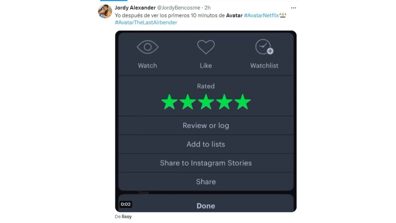"Acabo de ver el primer capítulo de Avatar y 10/10, buenísima esa vaina", "Bendito que Netflix no lo arruinó como de costumbre", "Tiene potencial y yo espero que siga porque necesito ver a Toph", "Avatar me tiene con la mente volada, es increíble", "Terminé adorando Avatar, denme más capítulos ya", "No es LA obra maestra, pero cumple, sí la apruebo" o "Me encanta la adaptación de Avatar de Netflix. Una perspectiva refrescante de la historia y los personajes", fueron otras opiniones.