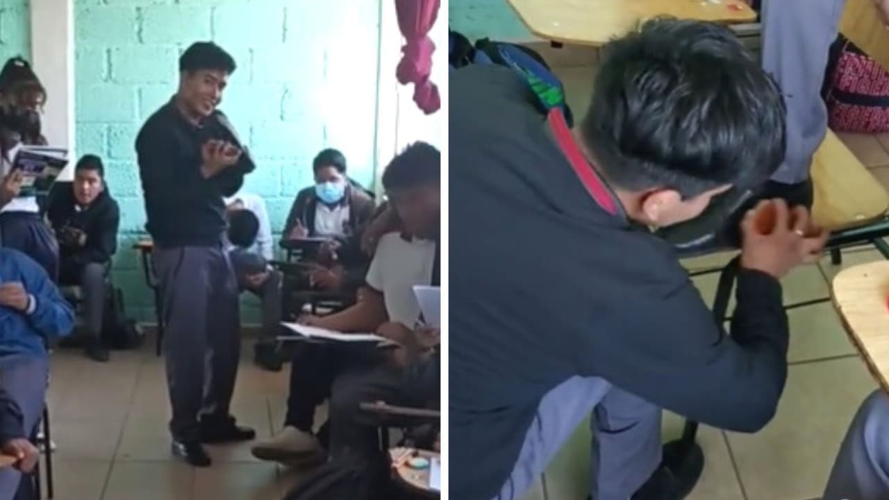 Quien lo dio a conocer en Internet fue su propio profesor en la cuenta @oswaldoaroche, pues el hombre no dudó en grabarlo mientras hacía su trabajo.