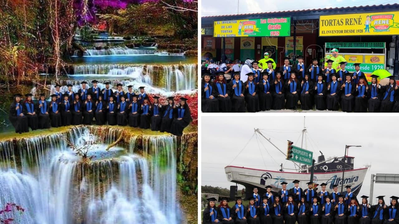 Estudiantes cambian el fondo de su foto graduación para hacerla más divertida