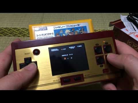 Un ejemplo de consola “ all in one” con pantalla incluida. Solían traer un cartucho con varios juegos “en uno” y aceptaban cartuchos de la Famicom japonesa, no así de la NES norteamericana.