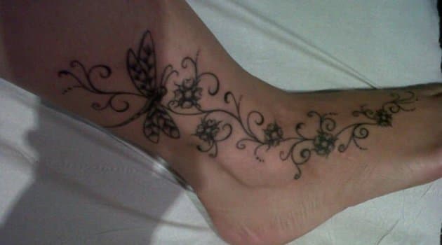 El tatuaje está hecho en blanco y negro y cubre parte del pie y el tobillo. Se trata de un diseño muy armonioso que combina bien los dos motivos y se luce.