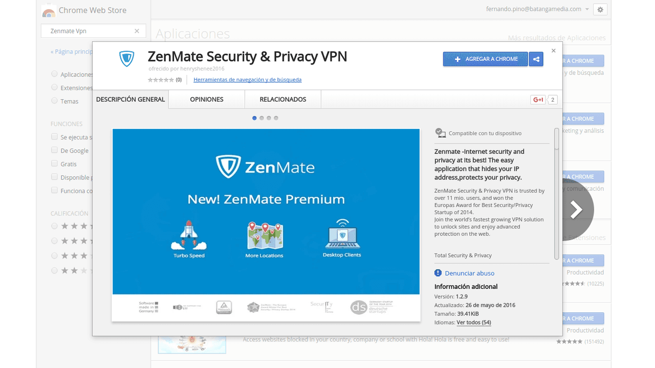 A diferencia de otras extensiones con servicio de VPN Zenmate está más dirigido a la privacidad y seguridad al navegar por Internet protegiendo tus datos, aunque también entrega la posibilidad de burlar restricciones geográficas enmascarando tu IP.