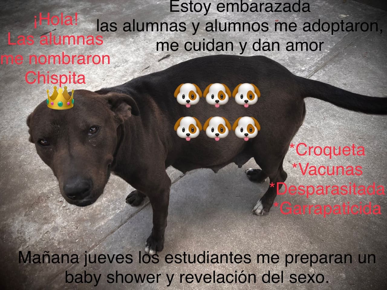 "Chispita ya tuvo asistencia médica en la mascotería, y cuando lo indique el médico veterinario se llevará acabo la esterilización (2 meses aproximadamente y no estar lactando). Chispita tiene una edad aproximadamente de 1 año de edad humana y resultó preñada en su primer celo. El propósito también es que los cachorros sean vacunados en el momento indicado por el veterinario. La Sra Maru, vecina del plantel nos apoyó con recibirla, atenderla en todos los aspectos y buscarles un hogar digno en los tiempos recomendados. Ella se ofreció de mandera desinteresada, sin embargo a través de los estudiantes se le entregarán los donativos en especie y económicos que se recaudaron por la comunidad de estudiantes", informaron.