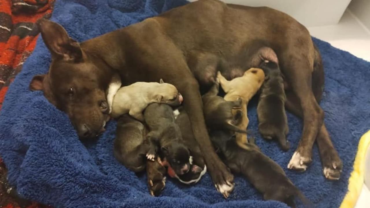 Según medios locales, la perrita llegó en muy malas condiciones, triste, lastimada, a punto de tener a sus bebés y buscando un refugio.
