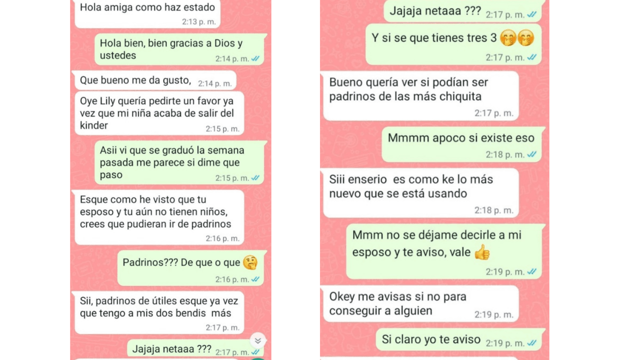 Para la mexicana todo comenzó cuando de manera inocente usó su cuenta de Facebook para revelar que no una, sino dos amigas suyas les pidieron a ella y a su pareja que fueran "padrinos de útiles escolares", recalcando que podrían hacerlo porque no tienen hijos propios.