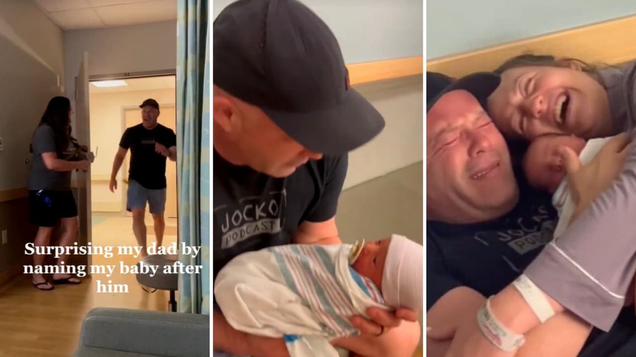La llegada de los bebés siempre es emotiva, pero un hombre no pudo contenerse de felicidad cuando se enteró cómo se llamaba su nieto y su reacción quedó grabada en TikTok.