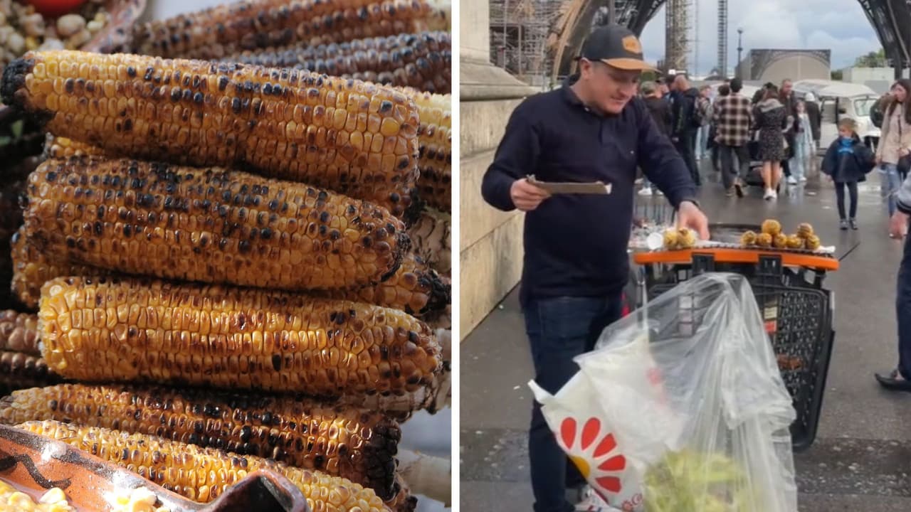 Hombre vende elotes preparados en la torre Eiffel y mexicanos lo critican: "Falta el chilito"