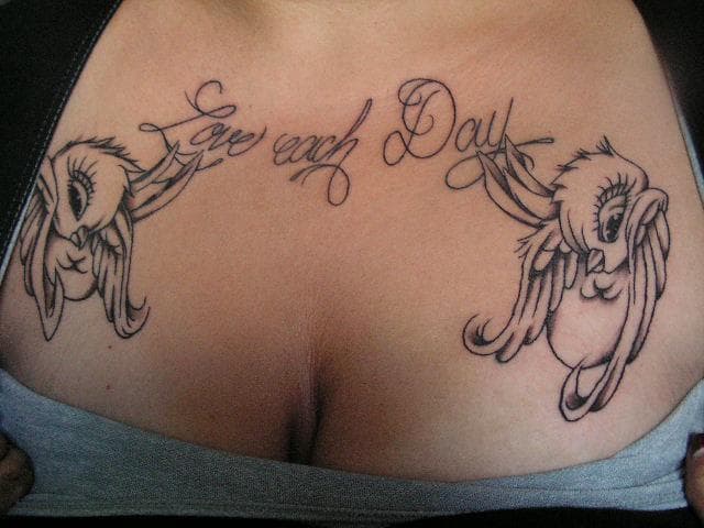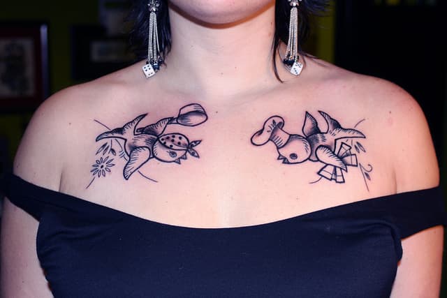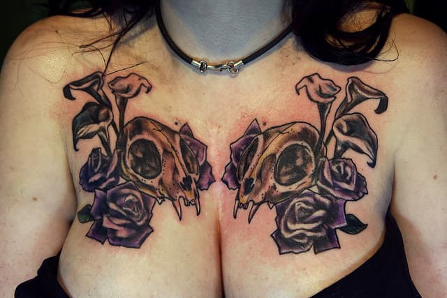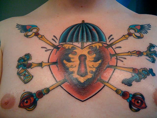 Los tatuajes en el pecho suelen basarse en diseños bien simétricos. Es decir, si se trata de un corazón con espadas clavadas, el corazón estará ubicado en el centro del tattoo, y las espadas estarán distribuidas a cada lado, en iguales cantidades (dos de un lado y dos del otro).