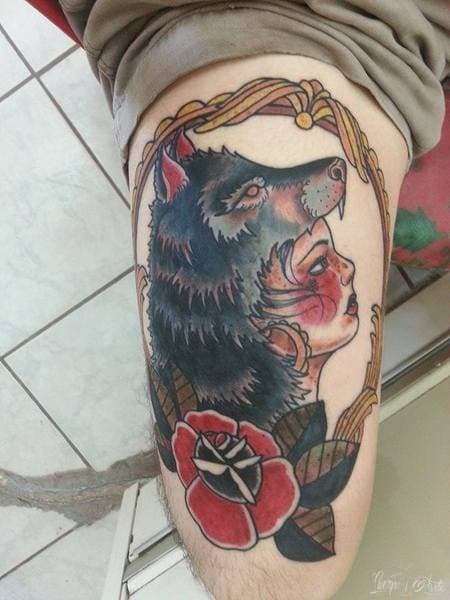 Este es sin dudas el que más me gusto. Con rasgos tanto del old school como el new school, el tatuaje es perfecto. Tiene una rosa clásica, colores opacos pero bien definidos, delineados gruesos muy bien trazados... Observa tú mismo...